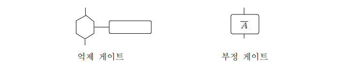 - 정게이트(not gate): 부정 모디파이어(not modifier)라고 하며, 입력사상의 반대 사상이 출력된다.