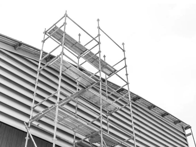 1) 비계 기둥의 밑둥에는 밑받침 철물 사용. 밑받침에 고저차가 있는 경우, 조절형으로 사용해 항상 수평 및 수직을 유지하도록 할 것