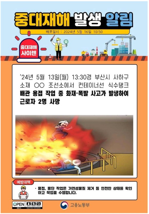 | 2024년 5월 중대재해 사이렌 내용 공유(1) (2) | 2024.09.13 |