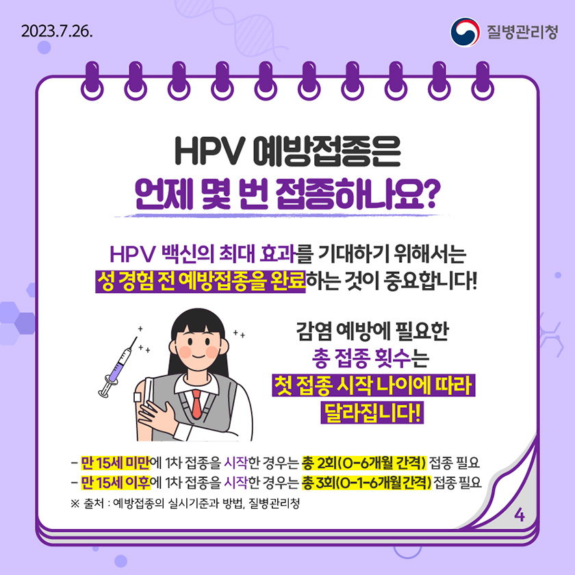 [4] 메디칼타임즈 - HPV 백신 최적 접종 전략은? 12~13세 1회 이상 (https://www.medicaltimes.com/Mobile/News/NewsView.html?ID=1157221)