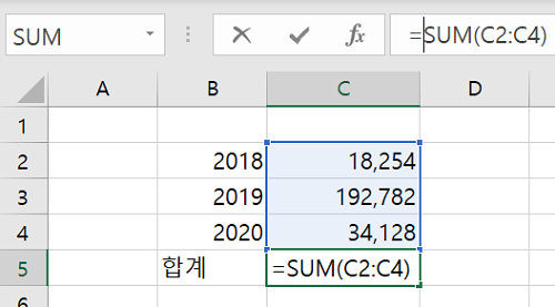 - SUM: 특정 범위의 값을 모두 더합니다.