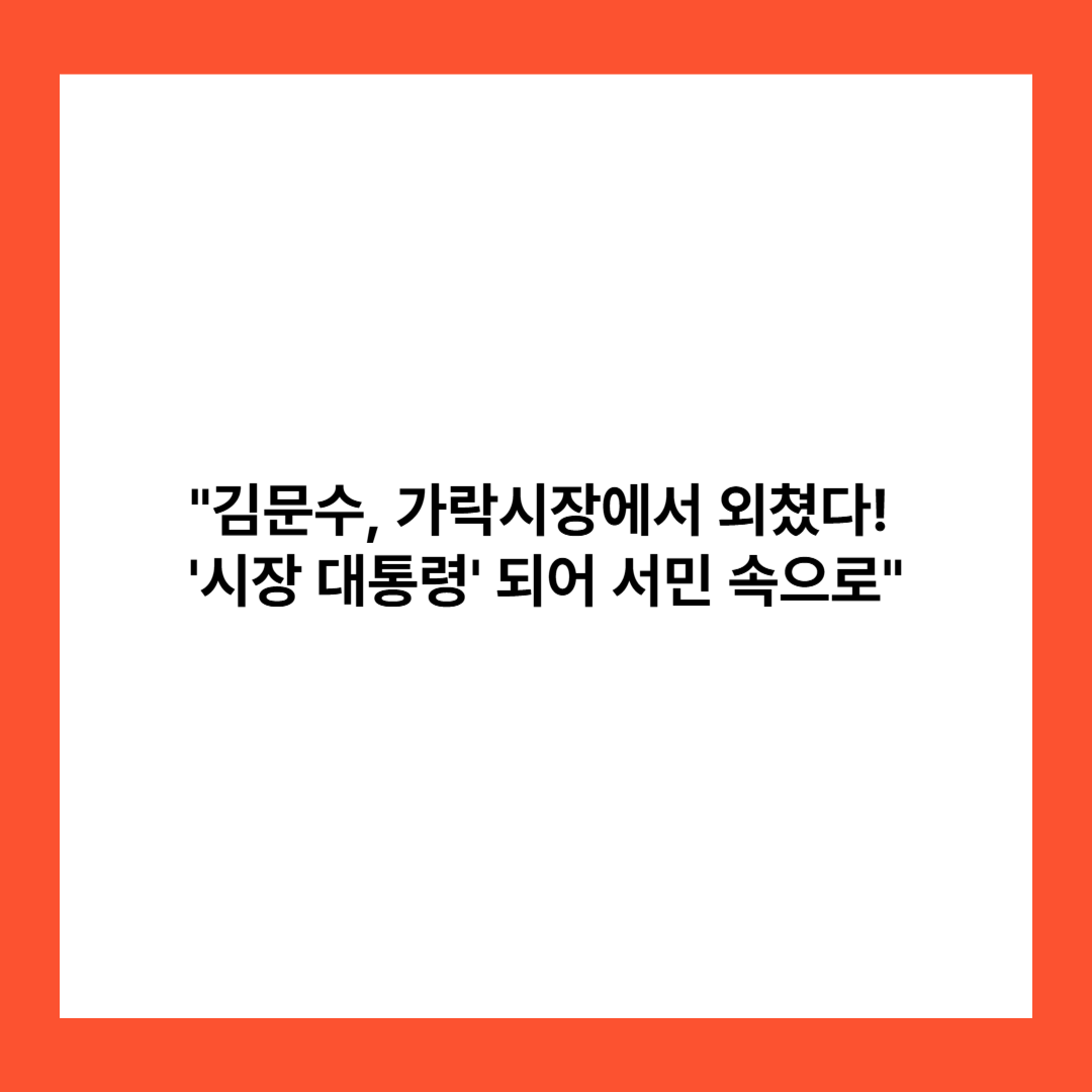 김문수 후보는 새벽 5시 서울 송파구 가락시장을 찾아 상인들과 인사를 나누며 선거운동을 시작했습니다. 그는 시장을 돌며 상인들의 고충을 청취하고, 순댓국으로 아침 식사를 함께하며 민생 현장의 어려움을 직접 체감했습니다.