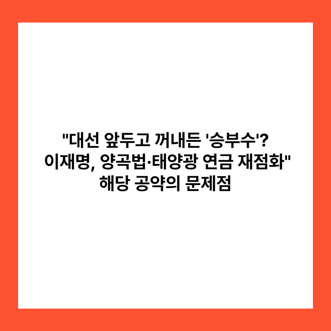 2025년 제21대 대통령 선거가 임박하면서 유력 후보들의 공약 경쟁이 본격화되고 있습니다. 특히 더불어민주당 이재명 후보는 기존에 제시했던 주요 정책들 중 양곡관리법 개정과 태양광 연금 확대 공약을 다시 꺼내며 주목을 받고 있습니다.