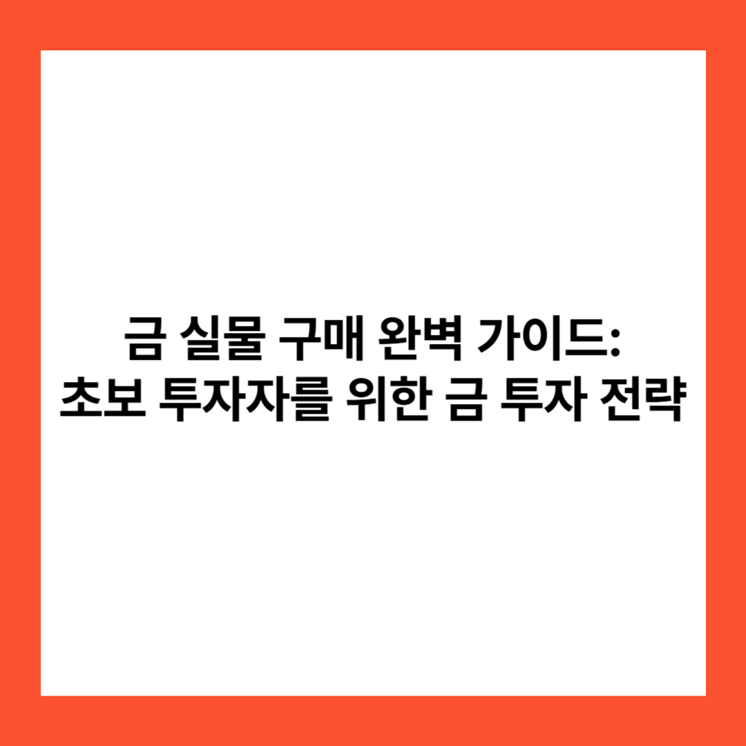 금 실물 구매 완벽 가이드: 초보 투자자를 위한 금 투자 전략