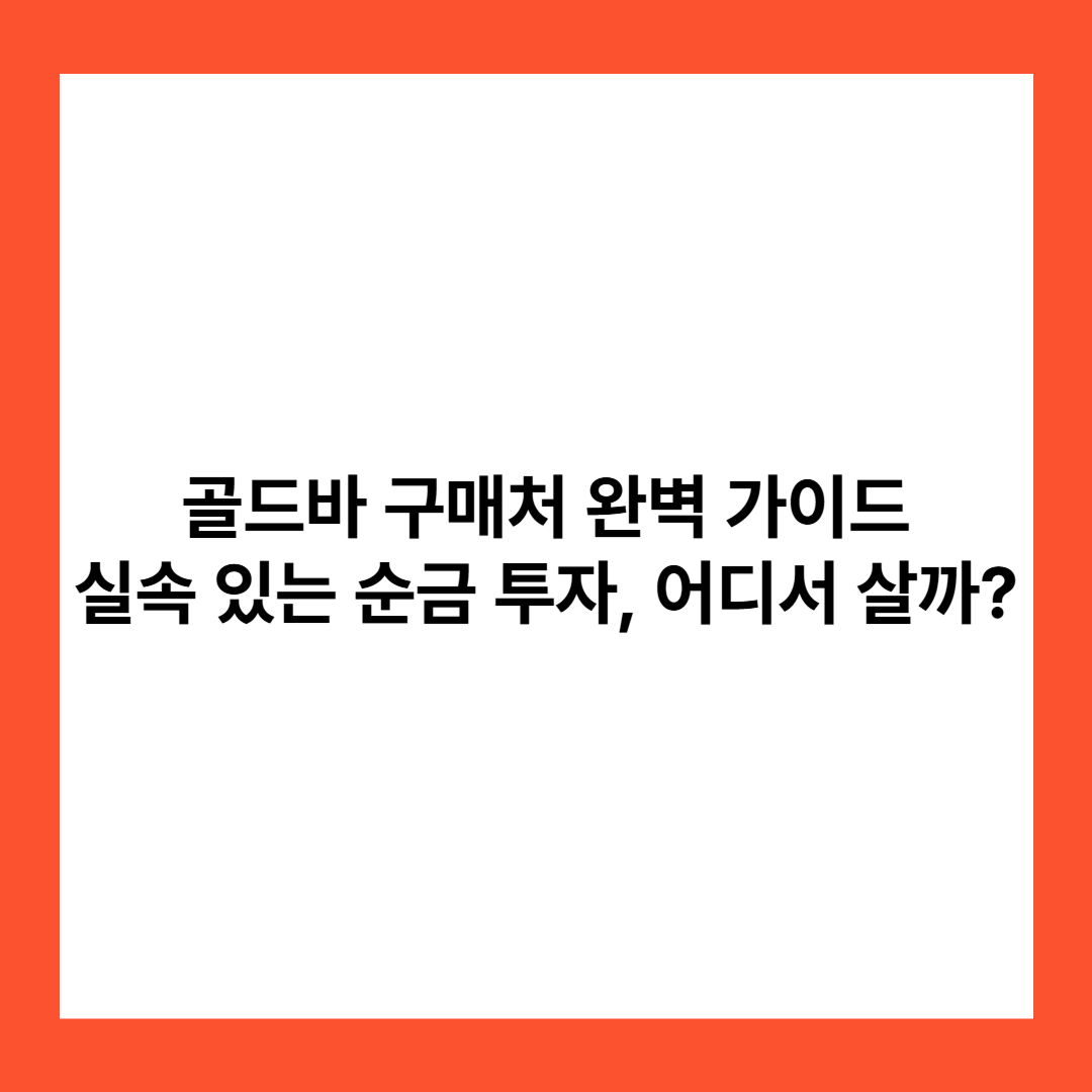 골드바 구매처 완벽 가이드|실속 있는 순금 투자, 어디서 살까?