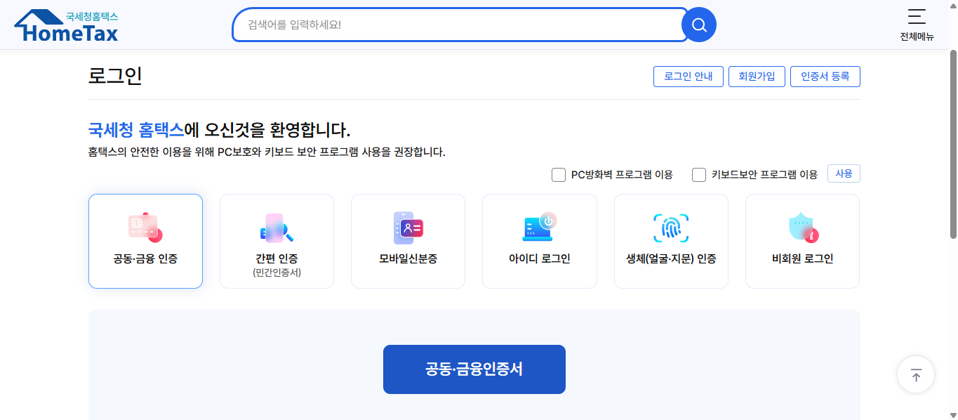 홈택스는 보안성과 편의성을 위해 다양한 로그인 방식을 제공한다.