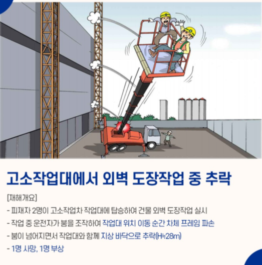 아래는 실제로 발생한 고소작업대 사고사례입니다.