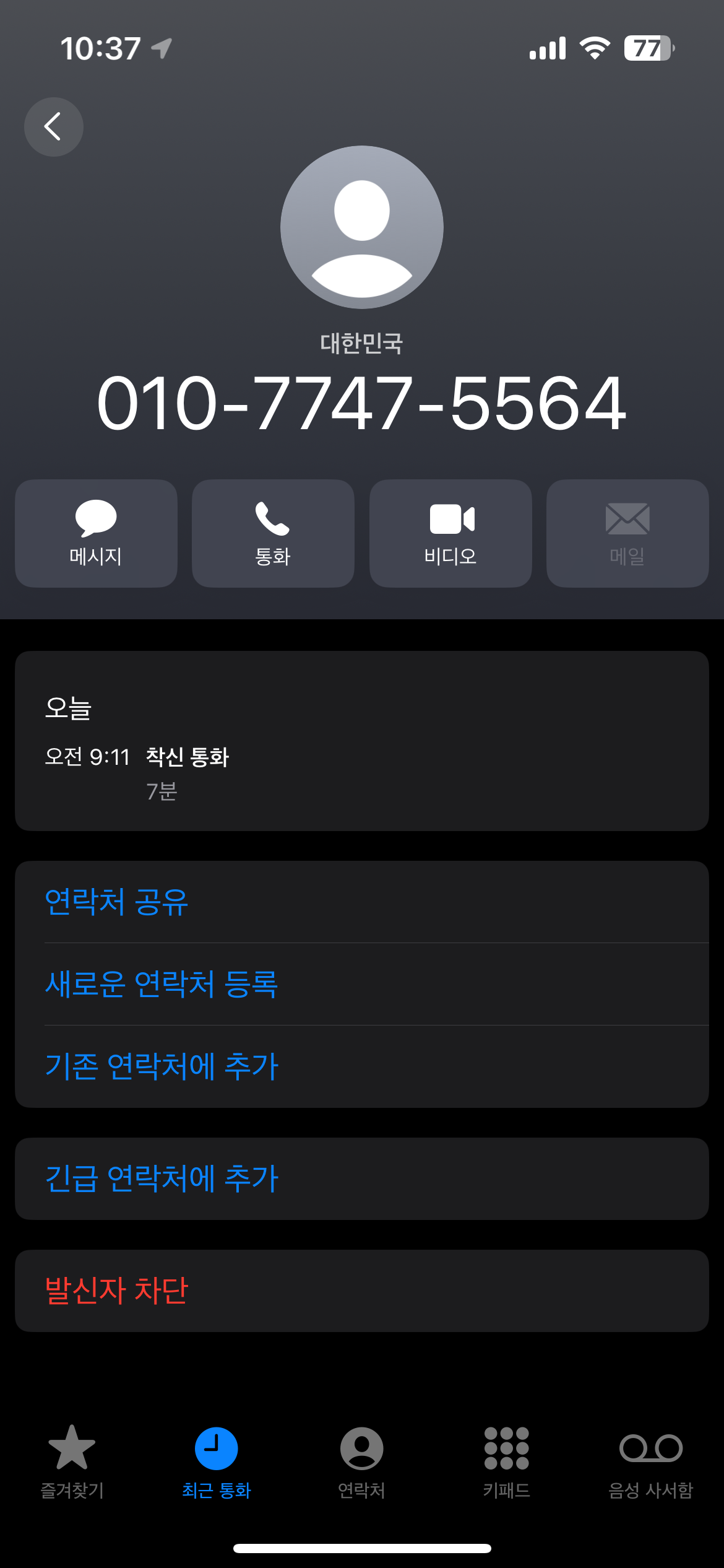 - (작성자) 7/2 9시 11분 보이스피싱 전화착신
