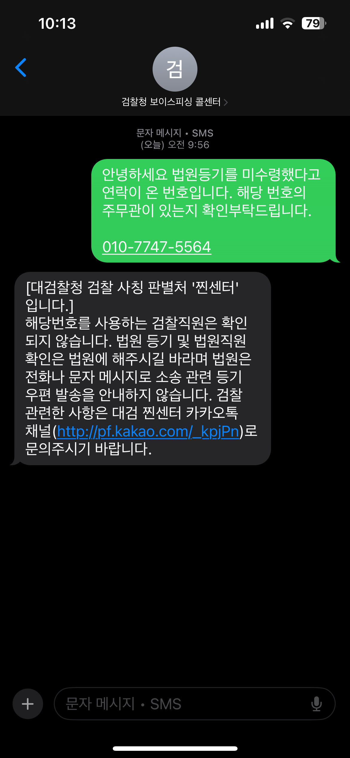- (피싱범) 법원등기 미수령으로 내일 오후 1시 수령가능여부 확인