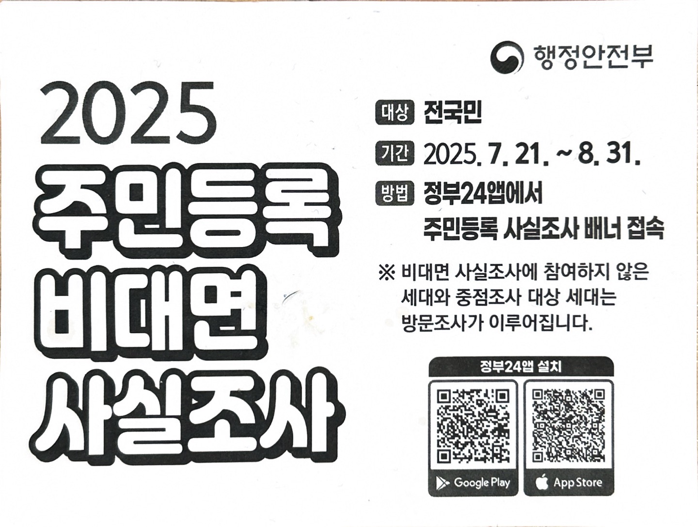 2025 주민등록 비대면 사실조사 시행 안내