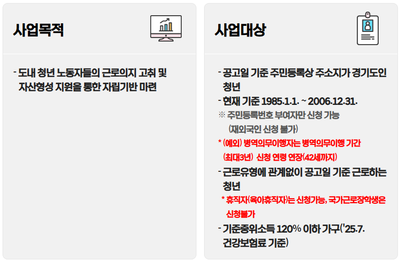 경기도 청년 노동자 통장, 지원 대상과 신청 조건